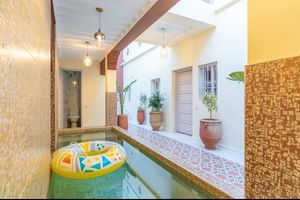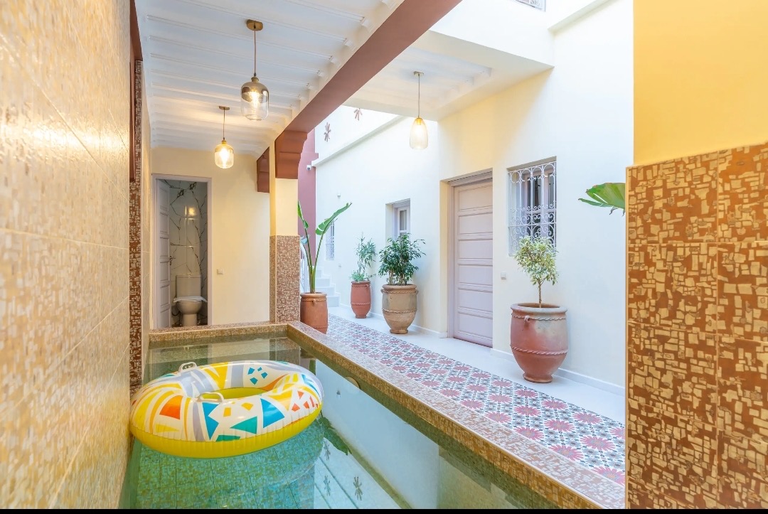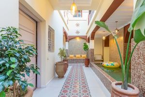 Niché dans une ruelle discrète à deux pas de Guéliz et de l'Hivernage, notre riad vous propose une parenthèse raffinée, où le charme de l'architecture traditionnelle marocaine rencontre le confort contemporain. Avec six chambres, chacune décorée avec soin et caractère, notre maison se vit comme un boutique-hôtel intimiste. À 10 minutes de la médina et 15 minutes de laéroport.