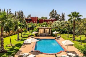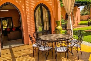 Deux villas, largement ouverte sur l'extérieur, ont été conçue comme un Riad avec une décoration soignée au cœur de la palmeraie de Marrakech sur la route de Fès. Proche des 3 meilleurs Golfs.